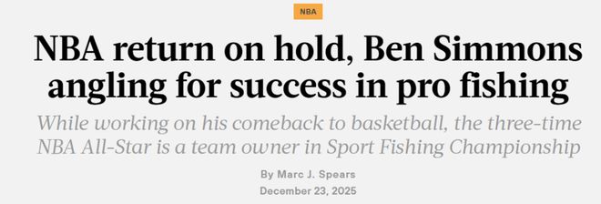 北京時(shí)間12月24日,本-西蒙斯接受名記Spears采訪,表示在權(quán)衡自己的NBA生涯下一步規(guī)劃之際,將投身職業(yè)釣魚(yú)領(lǐng)域。