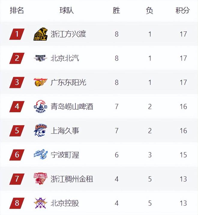 CBA積分榜最新排名!北京大勝幫廣廈沖上第1:廣東第3遼寧第10