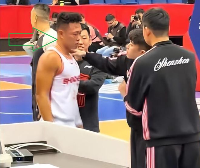 在雙方第一節(jié)比賽時。青島隊球員呂俊虎,直接打出了“降龍十八掌”,直接轟在了賀希寧的臉上,面對如此高功力的“功夫”,賀希寧完全是招架不住,當(dāng)時就蹲在地上,顯得十分痛苦,十分難受,顯然,賀希寧被打暈了……